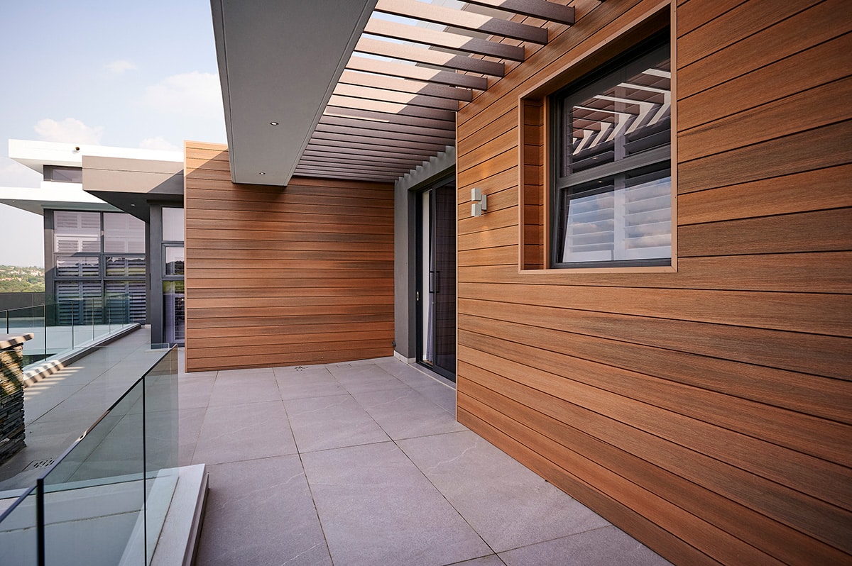 VistaClad cladding boards in Infinity co-extruded capped bamboo composite offer exceptional durability. The hardy bamboo PE (polyethylene) composite core is wrapped in a robustly engineered polymer cap for a resilient composite. Infinity offers a low-maintenance, eco-friendly alternative to conventional cladding in a selection of natural finishes. Enjoy its resistance features, such as protection against scratches, fading, moisture, insects, and weather, all backed by a 25-year warranty.